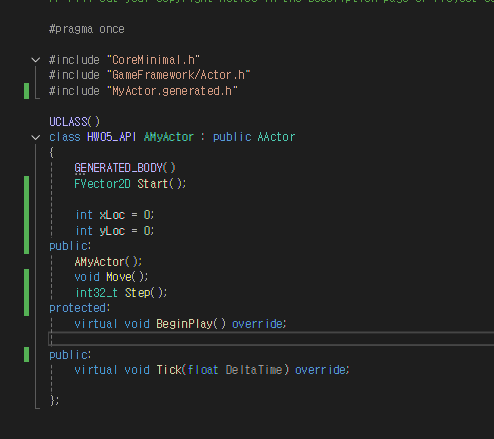 - Class 종류 중에 Actor를 선택하여 이름을 입력하고 생성 - Actor는 생성할때 클래스의 이름 앞에 A를 붙임