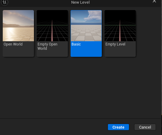 - 새로운 Level을 만들기 위해 File에서 'New Level'을 선택